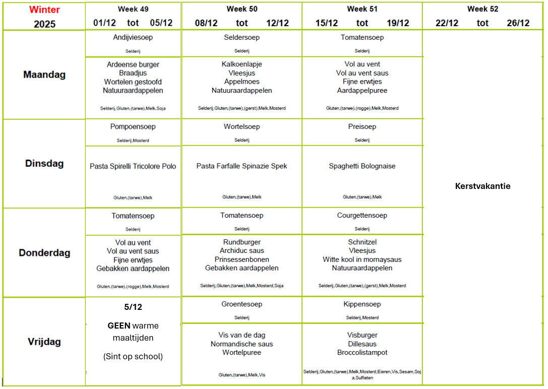 Menu december 2025